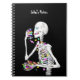 Notebook mit meinem Original-Kunstwerk zu Halloween ein Skelett-Charakter essen Süßigkeiten.