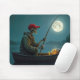 Ein Skelett mit einer roten Kappe und einem Mantel sitzt in einem kleinen Boot unter dem Vollmond und hält am Ende eine Angelrute mit einem leuchtenden Fisch