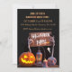 Kommen Sie mit uns für eine gespenstische Zeit. Diese Einladung enthält gruselige Skeletthändler, die Ihre Gäste zu Ihrem Halloween-Party einladen.