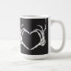 Skelettopfer bilden ein Herz auf einer Tasse.