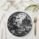 Eine spukhafte Schwarz-Weiß-Illustration einer SkelettHexe mit ihren Kürbissen.