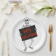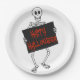 Ein Skelett, das ein großes Schild hält und jedem ein glückliches Halloween wünscht, dieser gruselige, aber lustige Halloween-Party-Teller wird Ihrem Halloween-Party in diesem Jahr genau die richtige Touch von "spooky" hinzufügen.