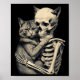 Skeleton Hugging Cat Lover Halloween T-Shirt Funny Poster