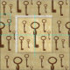 Kupferfarbene Skeletttasten auf einem Vintagen Sandboden.
