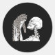 Skeleton mit einem katzenartigen Halloween-Kostüm Runder Aufkleber