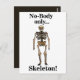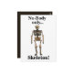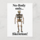 Skeleton No-Body Funny Postcard originally designed by Nisha Prabhu. Send a smile with our Skeleton No-Body Funny Postcard! This delightful postcard features a whimsical skeleton design accompanied by the cheeky phrase "No-body" making it the ideal way to share a laugh or a light-hearted message with friends and family. The charming skeleton graphic and clever pun are sure to grab attention and spread joy. Perfect for those who appreciate a good joke, this postcard serves as a fun reminder to not take life too seriously!