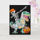 Skeleton Riding Dancing Dab Dinosaur T Rex Hallowe Karte