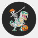 Skeleton Riding Dancing Dab Dinosaur T Rex Hallowe Runder Aufkleber