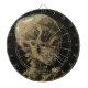 Skeleton Schädel mit brennender Zigarette durch Dartscheibe