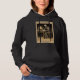A women’s black hoodie featuring a centered vintage-style skeleton illustration seated at a desk, composed like an old engraved study scene with muted tones and restrained text that feels familiar to readers, philosophers, and those drawn to quiet rooms and long hours of thought, evoking lamplit desks, worn books, and reflective solitude associated with dark academic culture, worn as a natural extension of inward focus rather than display, available through the store link below.