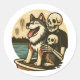 Skeleton with Dog on Haunted Lake Horror Art Runder Aufkleber