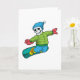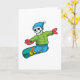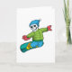 Skelett als Snowboarder mit Snowboard Karte