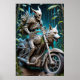 Skelett auf einem Chopper mit Wolfskopf Poster