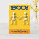 Diese ungewöhnliche editierbare Halloween-Grußkarte zeigt ein einfaches Design mit zwei Skeletten auf gelbem Hintergrund. Perfekt, um an alle Ihre Freunde und Familie zu senden.