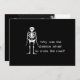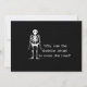 Wie albernen Halloween-Witze? Hier ist eine gute für dich. Weißes Skelett mit schwarzem Hintergrund und weißem Text frage: "Warum hatte das Skelett Angst, die Straße zu überqueren?" Die Antwort lautet: "Weil es keinen Mut hatte."