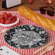 Skelette auf schwarzem Hintergrund und BONE APPÉTIT in schicken Schriften, diese Teller sind Spaß für Ihr Halloween-Party oder Halloween Geburtstagsparty.