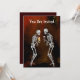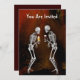 Laden Sie alle Ihre ghoulish Unholde vorbei für ein Spaß Halloween-Cocktail-Party, mit dieser lustigen skeleton themed Halloween-Partyeinladung ein. Grafiken eines gespenstischen Hintergrundes und zwei Skelette, die über Cocktails sich vermischen, verziert die Front der Einladung. Sie werden im weißen Text, auf dem vorderen und Haupteinladungstext, auf der Rückseite der Karte eingeladen. Personifizieren Sie für Ihr Halloween-Ereignis.
