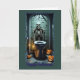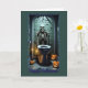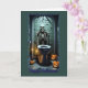 Diese lustige und humorvolle Halloween-Karte verfügt über ein unheimliches Skelett, das auf einer Toilette in einem dunklen, unheimlichen Badezimmer sitzt. Die Szene ist mit klassischen Halloween-Elementen dekoriert, darunter glühende Jack-o'-Laternen, flackernde Kerzen und Fledermäuse, die an der gefliesten Wand fliegen. Die lässige, fast nicht-chalante Haltung des Skeletts verleiht dem spöttischen Ambiente eine komische Drehung, die sich ideal für diejenigen eignet, die während der Halloween-Saison gut lachen.