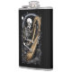 Skelett spielt die Harfe mit seinen zusätzlichen Händen und seinem Fuß.