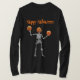 Ein Skelett, das einen Jack O' Lantern trägt und Kürbisse wie eine Hexe und eine beängstigende Katze auf beiden Händen hält. Einzigartiger und lustiger Halloween-T - Shirt im Grunge-Stil als billige Halloween-Kostüme.