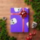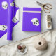 Whimsical Halloween Skeleton Wrapping Paper. Halloween Geschenkpapier. Halloween Wrapping Paper. Skelettfräsen Lila Hintergrund mit weißen Skelettköpfen, die Papier erstellen. Weiße Skelettköpfe schweben auf einem lebendigen Lila Hintergrund. Halloween Skeleton Crafting Paper.