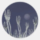 Halloween-Aufkleber mit Skeletten mit den Händen in der Luft.