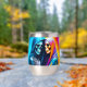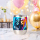 LGBTQIA+ Zwei Skelette, die unter einer Decke mit Regenbogenuntergrund kuscheln.