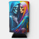 LGBTQIA+ Zwei Skelette, die unter einer Decke mit Regenbogenuntergrund kuscheln.