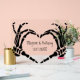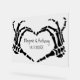 Fügen Sie Ihrer Hochzeit eine gruselige, personalisierte Touch mit diesem Acrylzeichen hinzu. Dieses klare Schild zeigt eine Darstellung der Skeletthand in einer Herzform, die die Namen der Braut und des Bräutigams und das Hochzeitstermin umrahmt. Die Grafik und der Text sind schwarz. Der makabre Stil ist ideal für Hochzeiten im Oktober oder für Veranstaltungen mit einem Gothic-Thema.