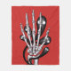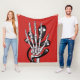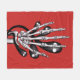 Skelettdecke mit einer grafischen Abbildung einer Hand eines Skeletts mit schwarzen, sprichwörtlichen Geistern, die sich durch den tiefroten Hintergrund drehen, mit leuchtenden Augen.