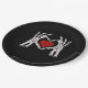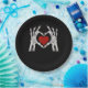 Skeletthandschuhe formen ein Herz mit rotem Herzen Pappteller