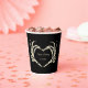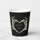 Fügen Sie Ihrer Hochzeit mit diesen Papiertassen eine gruselige, personalisierte Touch hinzu. Diese Einweg-Tassen sind schwarz und zeigen eine Abbildung der Skelettopfhand in einer Herzform, die die Namen der Braut und des Bräutigams und das Hochzeitstag umrahmt. Die Grafik und der Text sind in Creme oder Elfenbeinfarbe. Der makabre Stil ist ideal für Hochzeiten im Oktober oder für Veranstaltungen mit einem Gothic-Thema.