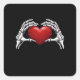 Skeletthandschuhe mit einem roten Herz-Design Clas Quadratischer Aufkleber