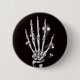Skeletton-Handschaltfläche mit einer grafischen Abbildung einer Hand eines Skeletts mit schwarzen, sprichwörtlichen Geistern, die durch einen anpassbaren schwarzen Hintergrund kreisen. Dieses gotische Knopfdesign wird Menschen gefallen, die wenig braune Kunst und seltsames Zeug mögen.