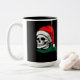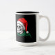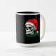 Skeleton Head mit einem Weihnachtsmütze auf einer Kaffee-Tasse.