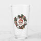 Skelett Weihnachtskranz auf einem Trinkglas.