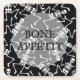 Skelette auf schwarzem Hintergrund und BONE APPÉTIT in schicken Schriftzeichen, diese schweren Zellstoff-Papier-Untersetzer sind Spaß für Ihr Halloween-Party oder Ihre Wohngestaltung. PASSENDE Artikel in unserem Geschäft.