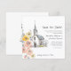 Announce your upcoming wedding with this charming hand-drawn 'Save the Date' card. Featuring a beautiful watercolor illustration of a quaint church surrounded by delicate floral blooms in soft peach, coral, and yellow hues, this design evokes a sense of timeless romance and rustic elegance. The gentle sketch-like quality and artistic watercolor splashes create a truly unique and memorable piece. It's the perfect way to share your special date with loved ones, setting the tone for a beautiful wedding celebration. Let this artistic design be the first glimpse into your magical day.