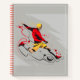 Dieses Notizbuch wird in normaler Form mit einer Skizzapapierseite in einem Kunstdruck eines Fußballspielers gezeigt. Passen Sie dieses Objekt an oder kaufen Sie es, wie es ist. Archivbild freepik.com