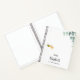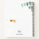 Ein schick weißer Hintergrund. Das Dekor ist mit einer Aquarellpflanze aus Eukalyptuspflanzen, Blättern und einer niedlichen, glücklichen lächelnden Biene geschmückt, die einen Umschlag liefert. Personalisieren und fügen Sie einen Namen, ein Jahr und eine Tiltle. Der Name ist schwarz geschrieben mit einem großen, modernen Handschrift Schrift. Ideal zum Zeichnen oder Notizen.