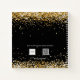 Ein stilvoller schwarzer Hintergrund mit Imitaten goldenen Glitzer Staub. Fügen Sie ein Jahr, Ihren Namen und einen Titel hinzu. Der Name ist mit einem modernen handgeschriebenen Stilskript geschrieben.