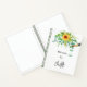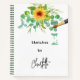 Ein weißer Hintergrund. Mit Sonnenblumen, Eukalyptusgrün und einer Pinsel geschmückt. Personalisieren und fügen Sie einen Titel und Namen hinzu. Schwarze Buchstaben. Der Name wird mit einem modernen handgeschriebenen Signaturstil geschrieben. Ein Notizbuch für Zeichnungen, Skizzen, Noten und Hausaufgaben in der Schule.