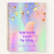 Ein angesagter holografischer Hintergrund mit Einhorn- und Regenbogenpastellfarben in Rosa, lila, Minzgrün. Dekoriert mit tropfenden Sternen und einem Regenbogenfarben Einhorn. Personalisieren und einen Namen hinzufügen. Text; Zeichn Träume. Gestalten Sie die Zukunft. Benutzen Sie es als Skizze, zeichnend, Notizen machen, handwerkliche Ideen, Schule, Zuhause-Arbeit.