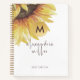 Elegante Aquarellsonnenblume mit handgeschriebenem Stilskript und Monogramm Anfangsemblem. Personalisieren Sie Ihre Daten mit Ihrem Namen, Monogramm Initial, Titel, Jahr oder benutzerdefinierten Text.