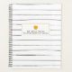 Ein Lehrer-Planer mit einem Skizzenbuch inspirierte Schwarz-Weiß dünne Streifen Design auf der Vorder-und Rückseite. Vorderseite zeigt einen benutzerdefinierten Text unter Illustration eines goldgelben Apfels.