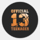 Sketll 13th Birthday Official Teenager Boy 13 Year Runder Aufkleber