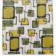 Ein abstraktes Kunstmuster aus den 1950er Jahren, das sich durch seine in Grün und Gelb verstreuten Quadrate auszeichnet.