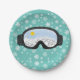 Ski Goggles Bergblick Schneeflocken Blau Pappteller