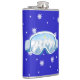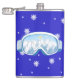 Ski Goggles with mountain reflection. Ski goggles and Snowflake Pattern on blue background. Playful sport winter design.