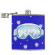 Ski-Schluchten mit Bergreflektion. Ski-Brille und Snowflake-Muster auf blauem Hintergrund. Verspieltes Sport Winter Design.